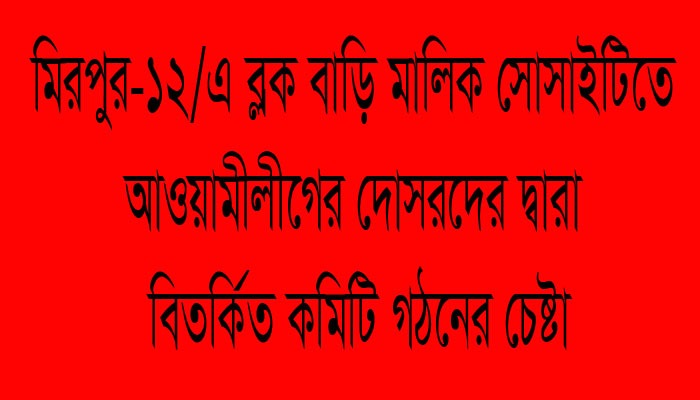 মিরপুর-১২/এ ব্লক বাড়ি মালিক সোসাইটিতে আওয়ামীলীগের দোসরদের দ্বারা বিতর্কিত কমিটি গঠনের চেষ্টা
