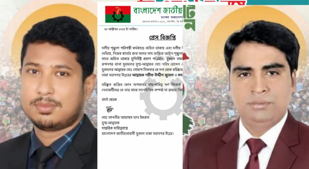 যুবদল নেতা নাইম হোসেন ও সোহাগ বহিষ্কার