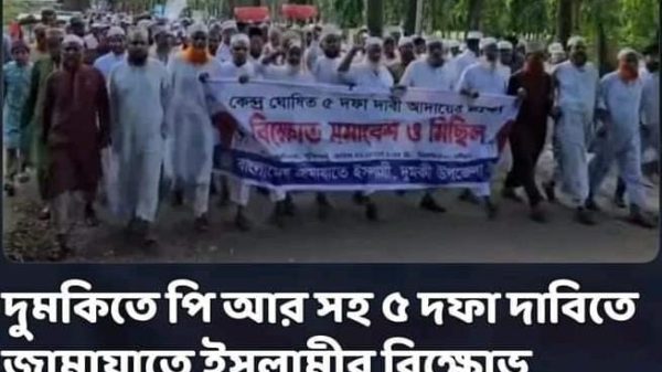 দুমকি উপজেলায়, পি আর সহ ৫ দফা দাবিতে জামায়াতে ইসলামীর বিক্ষোভ সমাবেশ ও মিছিল।। জাকির হোসেন হাওলাদার। দুমকি,(পটুয়াখালী) প্রতিনিধিঃ- কেন্দ্র ঘোষিত পিআরসহ পাঁচ দফা দাবির সমর্থনে পটুয়াখালী জেলার দুমকি
