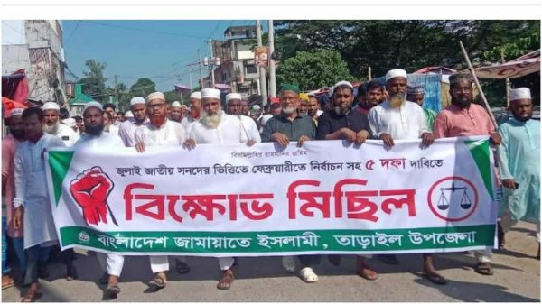 তাড়াইলে জামাতের জুলাই সনদের ভিত্তিতে নির্বাচনসহ ৫ দফা দাবিতে বিক্ষোভ মিছিল অনুষ্ঠিত আল-মামুন খান, স্টাফ রিপোর্টারঃ জুলাই সনদের ভিত্তিতে জাতীয় নির্বাচনসহ ৫ দফা দাবিতে বিক্ষোভ ও সমাবেশ করেছে বাংলাদেশ জামায়াতে