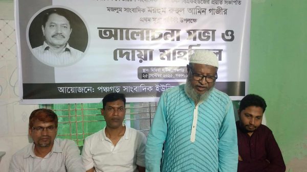 পঞ্চগড়ে সাংবাদিক রুহুল আমীন গাজী স্মরণে দোয়া ও আলোচনা সভা পঞ্চগড় প্রতিনিধি: বাংলাদেশ ফেডারেল সাংবাদিক ইউনিয়ন- বিএফইউজের প্রয়াত সভাপতি মরহুম সাংবাদিক রুহুল আমীন গাজীর প্রথম মৃত্যু বার্ষিকী উপলক্ষে পঞ্চগড়ে দোয়া